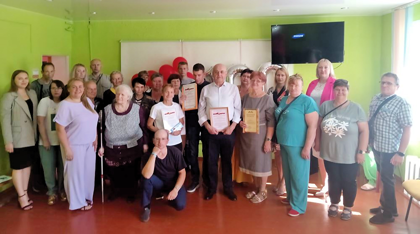Канстанцін Ламчаноўскі ўручыў Ганаровую грамату Галіне Маркавай, якая доўгія гады ўзначальвала раённую арганізацыю Беларускага таварыства інвалідаў па зроку, прымала актыўны ўдзел у грамадскім жыцці абласной арганізацыі. Падзякі за актыўную жыццёвую пазіцыю ўручыла дырэктар цэнтра Таццяна Донюш. Шчырыя словы выказала намеснік начальніка ўпраўлення па працы, занятасці і сацыяльнай абароне райвыканкама Юлія Сцяпанава.