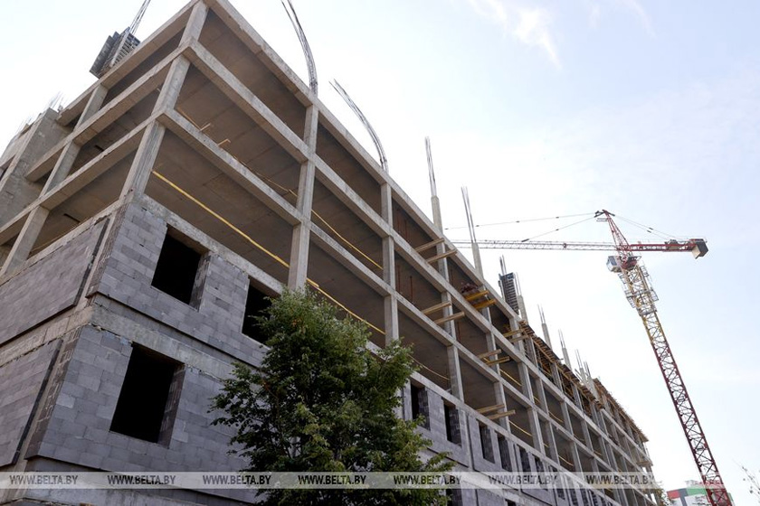«Это восьмиэтажное здание общей площадью почти 26,5 тыс. кв.м. Сейчас идет устройство монолитного каркаса седьмого этажа, ведутся кладочные работы и монтаж сетей и сантехники со второго по четвертый этаж, а также уже приступили к отделочным работам на первом этаже. Параллельно ведется устройство наружных инженерных сетей и надземного двухэтажного перехода, который соединит новый корпус с главным на уровне 3-4-го этажей. Финансирование поступает ритмично, так что мы уверены, что все сроки будут соблюдены. До конца года планируем завершить каркас, пустить на несколько этажей отопление, чтобы и зимой продолжать внутренние отделочные работы», — рассказал Евгений Матусевич.
