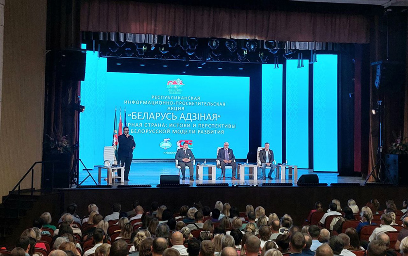 У Палацы культуры ААТ «Нафтан» на адкрыты дыялог прысутных запрасілі палітычны аналітык Беларускага інстытута стратэгічных даследаванняў Аляксей Аўдонін, дэпутат Палаты прадстаўнікоў Нацыянальнага сходу Рэспублікі Беларусь, доктар гістарычных навук Вячаслаў Даніловіч і генеральны дырэктар інфармацыйнага агенцтва «Минск-Новости» старшыня праўлення Беларускага саюза журналістаў Андрэй Крывашэеў.