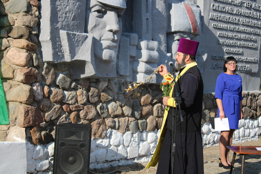 Настаяцель обальскага Свята-Ануфрыеўскага храма Уладзімір Пучынскі (які родам з Заходняй Беларусі) расказаў, што для яго 17 верасня з дзяцінства было святочнай датай, бо яго дзяды і бабулі заўжды ўспаміналі, як кветкамі і хлебам-соллю сустракалі воінаў Чырвонай Арміі ў 1939 годзе, радаваліся аб’яднанню з Савецкай Беларуссю. Ён прачытаў кароткую малітву аб воінах, партызанах, мірных жыхарах, якія загінулі ў вайне.