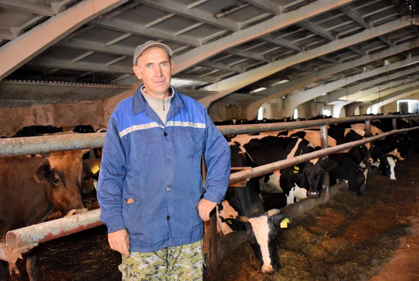 «Я раней працаваў на будоўлі ў Расійскай Фэдэрацыі, – расказаў Дзмітрый Ганушчанка (на здымку). – А цяпер вось уладкаваўся жывёлаводам на ферме. Кармлю жывёлу, у дапамогу мне – кормараздатчык “Гаспадар”, вычышчаю кароўнік. Калектыў наш працавіты і дружны».