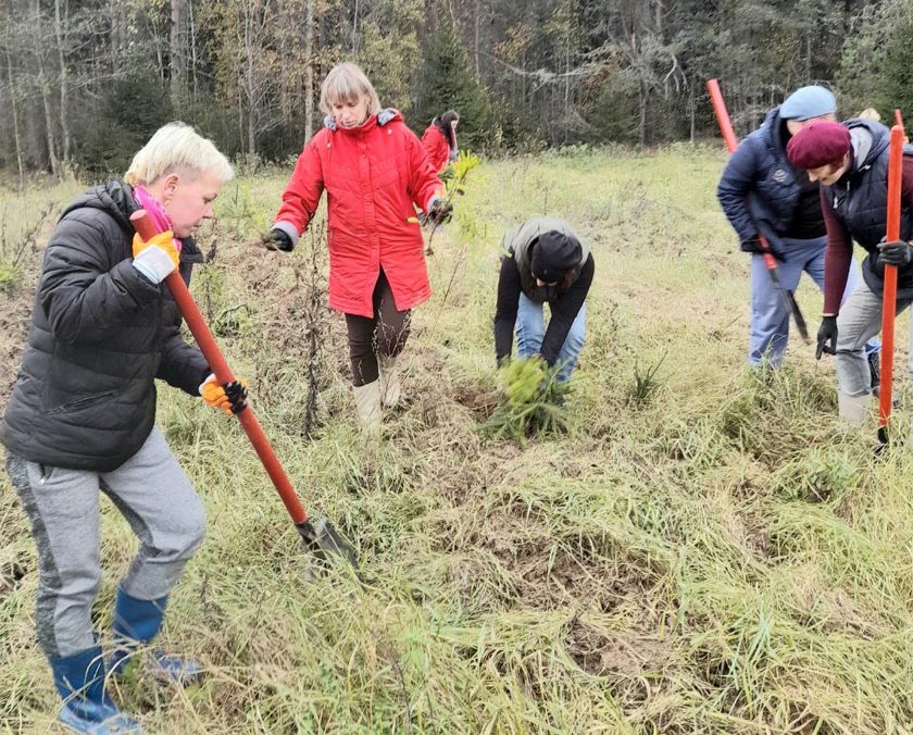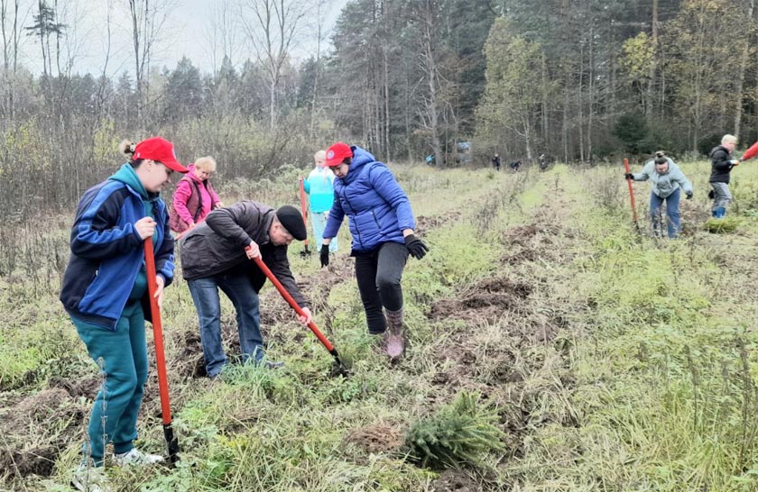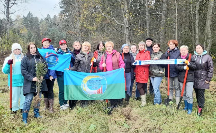 Прадстаўнікі райкама прафсаюза работнікаў АПК, раённых арганізацый Беларускага прафсаюза работнікаў адукацыі і навукі, культуры, інфармацыі, спорту і турызму, дзяржаўных і іншых устаноў арганізавана выехалі ў лес. Ляснічы Мікіціхінскага лясніцтва Сяргей Блыкін, які суправаджаў групу прафсаюзных актывістаў, паказаў тэхналогію пасадкі чатырохгадовых елачак, якія прывезлі з гадавальніка ў Полцеве. Адна за адной, рад за радам – на лясным участку за вёскай Мясаедава было высаджаны 350 елачак.