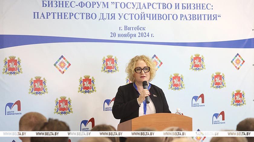 Анжелика Никитина отметила весомый вклад частного бизнеса в экономику северного региона. «Доля предпринимательства в Витебской области ежегодно прирастает. Если говорить уже сегодня, то 35% инвестиций в общем объеме по области формирует предпринимательский сектор. Это и 20% валового регионального продукта, 13% объема промышленности. И самое основное, что наш бизнес направлен на экспортоориентированность, импортозамещение. Сегодня реализуется уже 90 импортозамещающих проектов, в том числе в кооперации с РФ. Доля малого и среднего бизнеса в экспорте товаров составляет 80%, а в сфере услуг — 65%. Немаловажно отметить, что экспорт сферы услуг динамично развивается. Ежегодно мы добавляем практически по 10% в этом направлении. Это туристические, транспортные, оздоровительные, IT-услуги. Малый и средний бизнес формирует треть доходов в бюджет области. Динамика в развитии есть, есть прирост поступления налогов. Положительно повлияли на формирование бизнеса изменения в законодательстве, которые касаются работы предпринимателей в статусе юридического лица», — подчеркнула зампредседателя облисполкома.