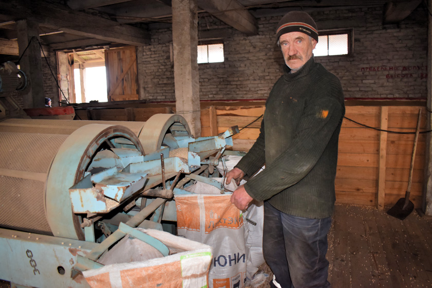 «Працую на сартавальнай машыне даўно, больш за дваццаць гадоў. За дзень на маім рахунку па 8-9 тон зерня, – расказаў Валерый. – Звычайна мне дапамагае Ларыса Хмыльнікава, мясцовы палявод. А на час яе водпуску падстаўляе плячо загадчыца склада Вольга Голубева».
