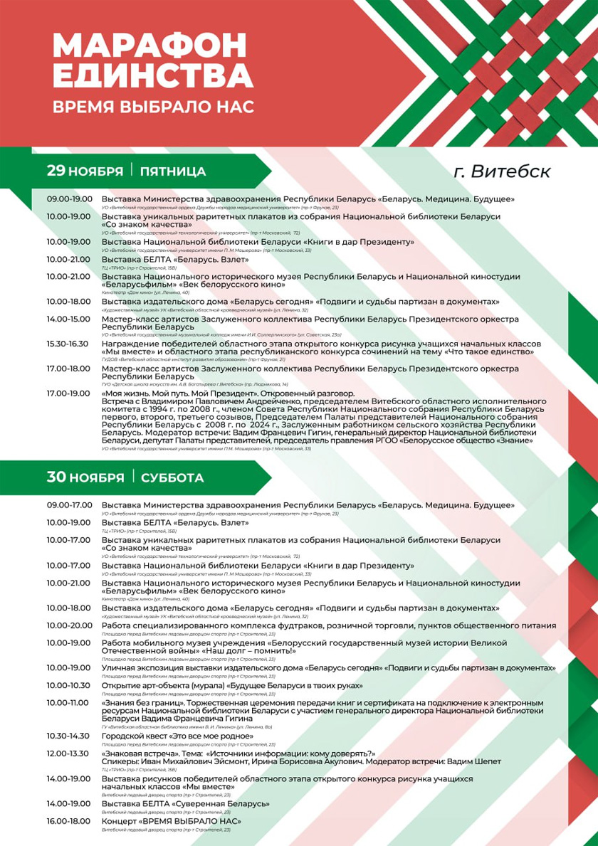 Программа республиканской общественно-культурной акции «Марафон единства» в Витебске