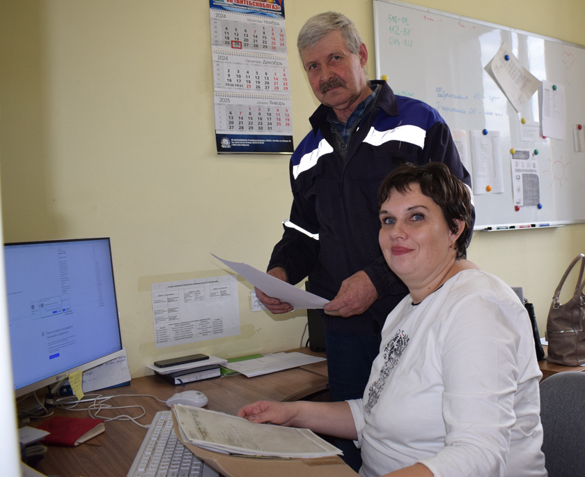 На вытворчасці працуе нямала абальчан, верных сваёй прафесіі, са стажам работы дваццаць гадоў і больш. Сярод такіх – майстар Віктар Арлюкевіч і прыёмшчыца заказаў Іна Прыгун.Раніцай мы засталі іх за рабочым працэсам: Іна выпісвала пуцявыя лісты для механізатараў, а Віктар чакаў, каб забраць іх, бо адказвае за спраўнасць і бесперабойную работу тэхнікі. «Адказваю за 17 адзінак самаходных машын, а таксама больш за дваццаць адзінак ўборачна-прычапной тэхнікі, – адзначыў Віктар. – Будуць усе трактары і агрэгаты спраўныя – своечасова адгрузім прадукцыю і з заданнем справімся».