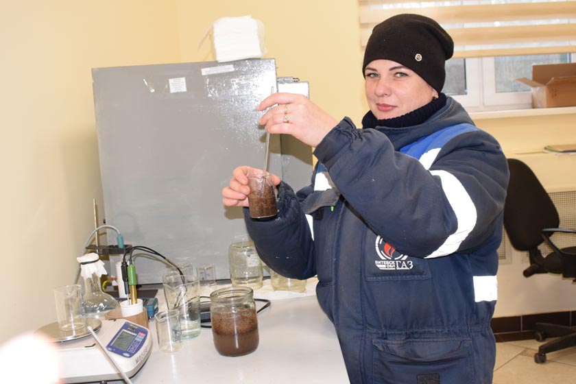 Лабарант Святлана Мароз правярае прадукцыю на якасць – на вільготнасць, электраправоднасць, шчыльнасць і іншыя параметры. Акрамя гэтага, адбірае пробы і адпраўляе ў лабараторыю галаўнога прадпрыемства, якое знаходзіцца ў Крулеўшчыне Докшыцкага раёна. Так што прадукцыя праходзіць праверку двойчы – і ў яе якасці можна не сумнявацца!