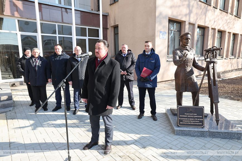 27 февраля в Витебске состоялась торжественная церемонии открытия скульптуры «Землеустроитель», посвященная 55-летию со дня образования Витебского филиала проектного института «Белгипрозем». В церемонии открытия приняли участие заместитель председателя Государственного комитета по имуществу Николай Бобер, заместитель председателя Витебского облисполкома Дмитрий Петруша и другие официальные лица. Бронзовую скульптуру создал витебский скульптор Александр Гвоздиков.