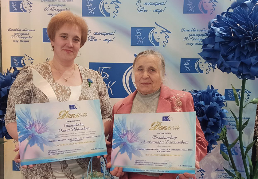 Дзве жыхаркі Шумілінскага раёна – старшыня раённай прафсаюзнай арганізацыі Беларускага прафсаюза работнікаў АПК Вольга Пусянкова і ветэран працы Аляксандра Пальвінская – сталі лаўрэатамі абласнога этапа XVII рэспубліканскага конкурсу «Жанчына года-2024», ініцыянаванага РГА «Беларускі саюз жанчын». Ушанаванне лепшых прадстаўніц розных сфер паўночнага рэгіёна адбылося напярэдадні жаночага вясенняга свята ў Віцебску ў канцэртнай зале «Віцебск».