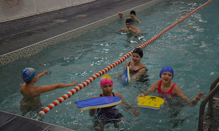 У сераду, 26 сакавіка, з раніцы ў басейне фізкультурна-аздараўленчага цэнтра былі пяцікласнікі Мікіціхінскай СШ і Башнёўскай БШ. Адна група плавала ў сваё задавальненне, другія – пад кіраўніцтвам інструктара вучыліся трымацца на вадзе. Але ж пазітыў і добры настрой быў у кожнага.