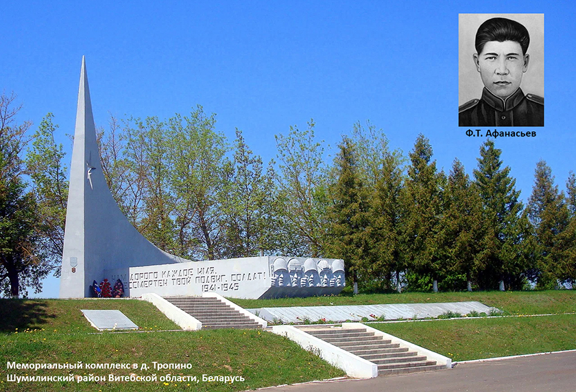 Ф. Т. Афанасьеў пахаваны ў воінскіх могілках у в. Тропіна.
