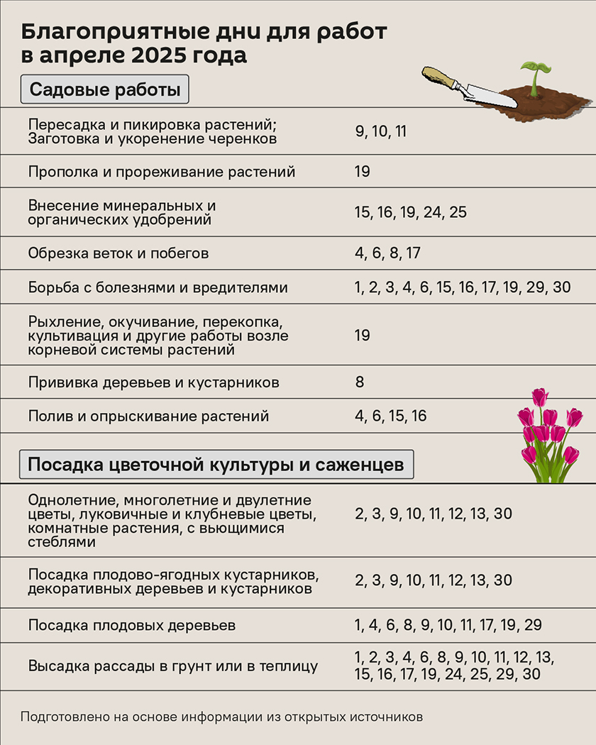 Второй месяц весны обещает быть удачным для большинства садово-огородных работ. Большинство дней отмечены как благоприятные, что позволит активно заняться подготовкой к сезону. Однако, как и всегда, стоит избегать работы в дни Новолуния, когда растения особенно уязвимы. В это время лучше сосредоточиться на планировании и подготовке инструмента.