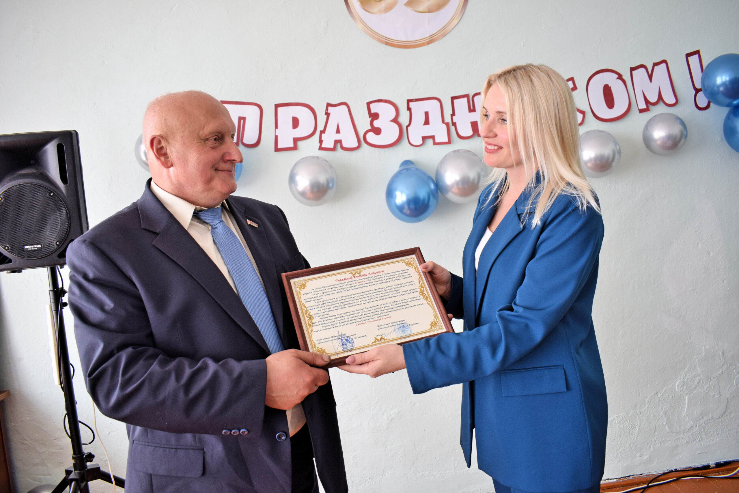 Галоўны спецыяліст раённага Савета дэпутатаў Таццяна Шчарбакова павіншавала землякоў са святам і пажадала дабрабыту. Ад раённага выканаўчага камітэта і раённага Савета дэпутатаў яна ўручыла Падзячны ліст старшыні сельвыканкама Уладзіміру Сядлоўскаму.