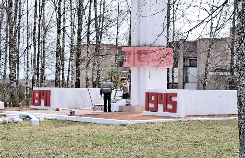 Парадавала карціна на памятным знаку загінуўшым землякам у гады вайны ў аграгарадку Амбросавічы – тут ва ўсю ішлі рамонтныя работы: тынкоўка, афарбоўка, добраўпарадкаванне прылягаючай тэрыторыі. Прыбіралі мінулагодняе лісце вучні Амбросавіцкай школы. Дагэтуль на рэспубліканскім суботніку тут была дэманціравана старая плітка. Ініцыяваў работы старшыня Дабейскага сельвыканкама Аляксей Іспянькоў.