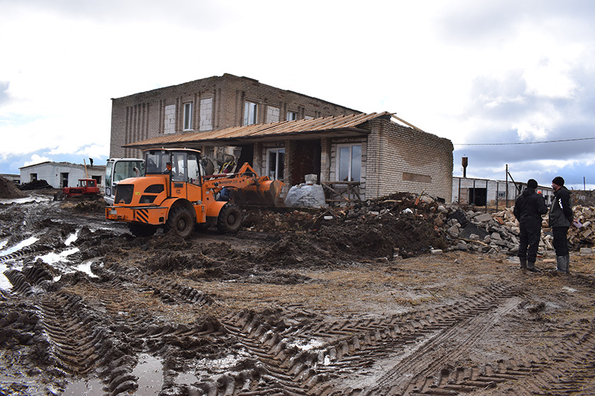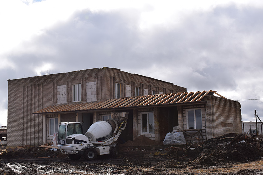 На аб’екце працуюць каля трыццаці чалавек будаўнічай брыгады «Віцебскаграпрадукт», задзейнічана нямала тэхнікі: самаходны бетоназмяшальнік, франтальны пагрузчык, экскаватары, бульдозеры. На першых двух памяшканнях ужо адрамантаваны дах, цэментуецца падлога, праводзіцца каналізацыя. Работы наперадзе яшчэ вельмі многа. Трэба абтынкаваць сцены, зманціраваць электраабсталяванне, усталяваць лінію кармлення, падвесці водаправодныя і газавыя трубы, зрабіць агароджу і пад’язныя шляхі.