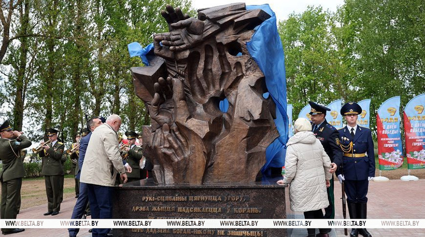 На открытии памятного знака побывал также заместитель генерального прокурора Беларуси Сергей Хмарук. «На территории бывшего «5-го железнодорожного полка» с самого начала оккупации фашисты разместили Шталаг-313. И фактически все три года оккупации здесь содержались и военнопленные, и мирное население — 150 тыс. человек прошли через этот лагерь, 80 тыс. погибли. Мы помним в эти дни и всегда тех, кто принес Победу на нашу землю, одолел фашистов и их приспешников, помним мирных людей, которые отдали жизни и были замучены на территории таких лагерей. Результаты расследования уголовного дела о геноциде белорусского народа, которое осуществляет Генеральная прокуратура Беларуси, показывают, что 290 деревень разделили участь Хатыни, 170 из них находились на территории Витебской области. В эти дни мы должны помнить всех погибших в той войне. Это место поклонения всем павшим, память о которых живет в наших сердцах», — сказал он.