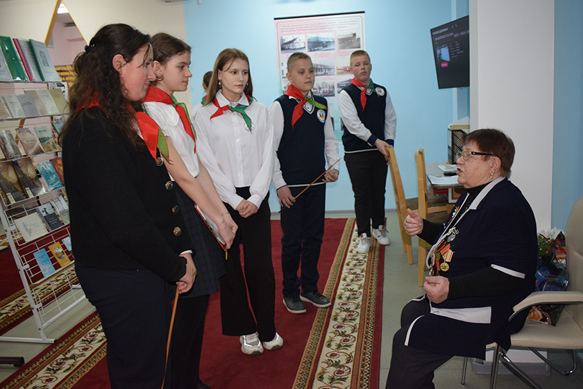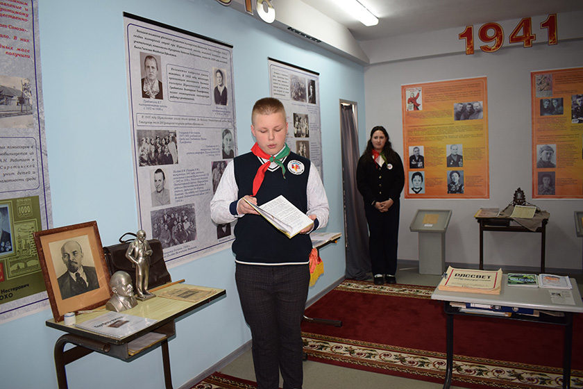 Пра музей гісторыі школы расказала яго кіраўнік Святлана Емяльянава, выступіла Марыя Кавалёва, якая ў 60-я гады працавала тут старшай піянерважатай. Марыя Аляксееўна расказала пра школьны гурток “Чырвоныя следапыты”, патрыятычную работу, якая была наладжана ў школе, сувязь з роднымі былога вучня школы Пятра Антонавіча Акуцыёнка, чыё імя зараз носіць навучальная ўстанова.