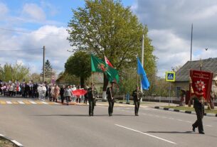 У дзень прыезду гасцей з Расіі на брацкіх могілках у Дворышчы прыбіралі, фарбавалі агароджу вучні Слабадской школы. Расіяне далучыліся да работы. Пасля Фёдар Ялоўскіх (фота з сямейнага архіву) на магілу ўсклалі кветкі, ушанавалі памяць загінуўшых салдат-вызваліцеляў хвілінай маўчання.