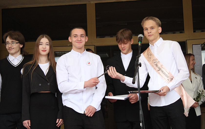 Передача эстафеты. Ключ от школы выпускники передают десятиклассникам.