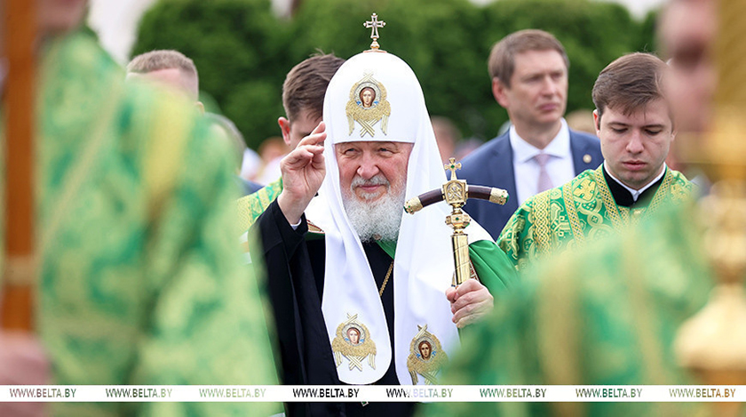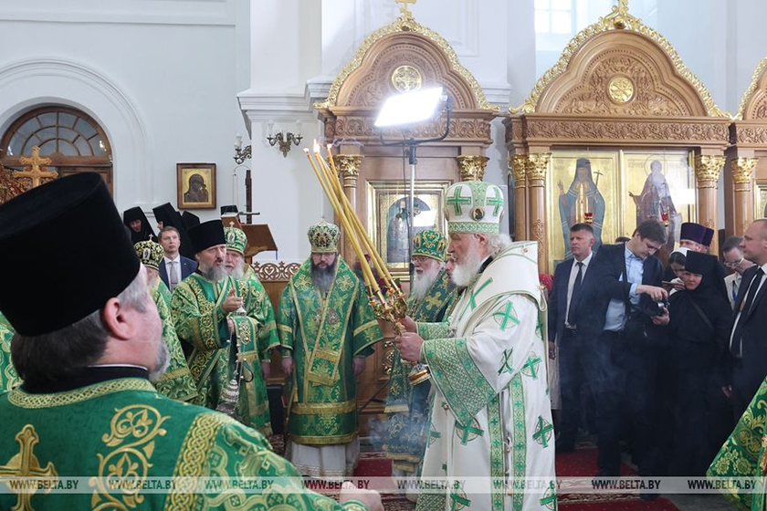 В Полоцке в Спасо-Евфросиниевском женском монастыре глава Русской православной церкви (РПЦ) Патриарх Московский и всея Руси Кирилл возглавляет Божественную литургию.