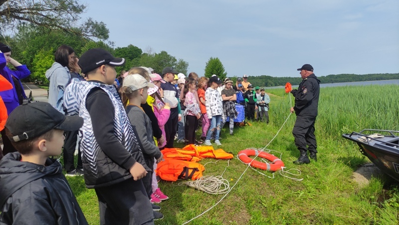 Не засталася без увагі і адна з самых актуальных летніх тэм – бяспека на вадзе. Начальнік абласной дзяржаўнай інспекцыі па маламерных суднах Аляксандр Ярмаш арганізаваў для дзяцей спецыяльныя заняткі па навучанні плаванню. А ратавальнікі арганізавалі работу навучальнай інтэрактыўнай пляцоўкі, дзе рабяты ў гульнявай форме паўтарылі навыкі правілаў бяспечных паводзін на водных акваторыях. Самыя смелыя змаглі пракаціцца па воднай роўнядзі возера на маторнай лодцы, як кажуць, з ветрыкам.