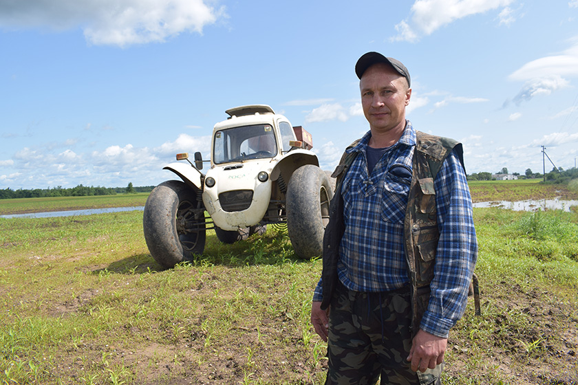 Гэта складана сёлета рабіць на звычайных трактарах, бо кукурузныя палеткі нізкія, месцамі з-за дажджоў стаіць вада. Таму выручае “Раса” на пнеўматычным хаду – шырокім гумавым колам гразь не страшная. Да “Расы” падчапілі РДУ – і за работу.