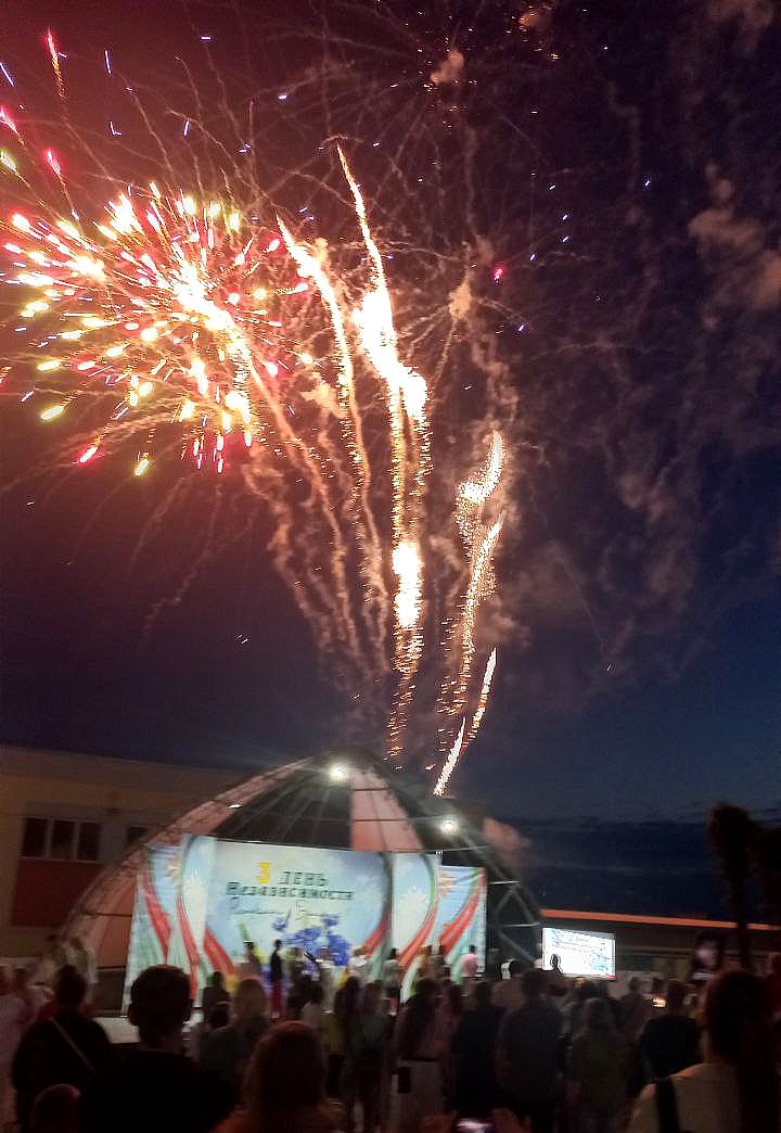 Святочны дзень у Шумiлiне завяршыўся акцыяй «Спяваем Гiмн разам» і феерверкам.