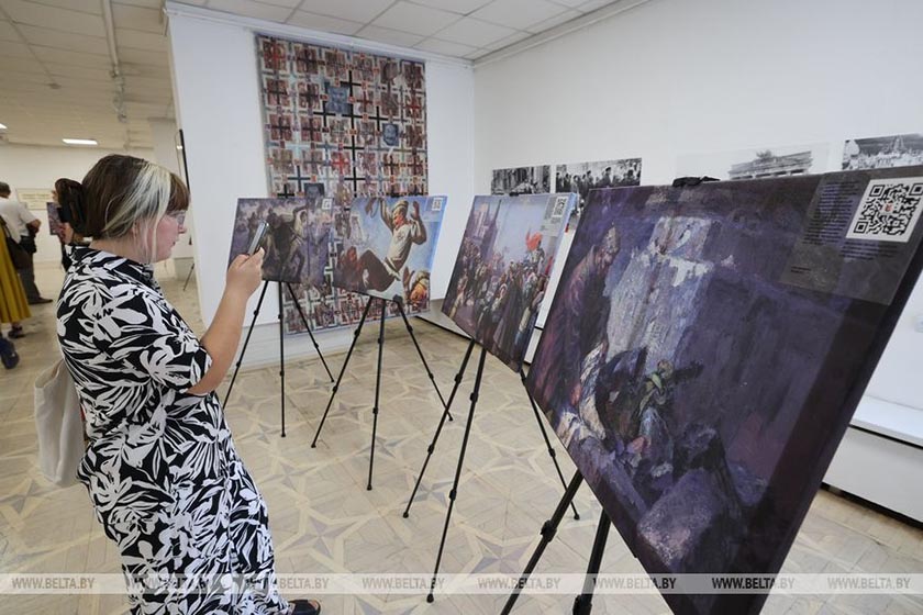 Проект является инициативой редакционно-издательского учреждения «Культура і мастацтва» и реализуется совместно с Белорусским государственным музеем истории Великой Отечественной войны и Белорусской государственной академией искусств. Директор учреждения Наталья Кузнецова рассказала корреспонденту БЕЛТА, что на выставочной площадке в фестивальной столице представлены работы, которых еще не видел читатель журнала «Мастацтва». «В Витебске мы привезли 24 полотна. Среди них есть такие, которые еще не печатались на страницах нашего издания. Этот проект работает уже с 2024 года. Изначально он был приурочен к 80-летию освобождения Беларуси от немецко-фашистских захватчиков. Он продолжился в этом году. Сейчас проект также посвящен 80-летию Великой Победы», — отметила она.