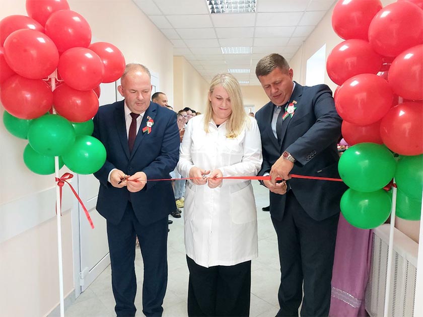 Права перарэзаць чырвоную стужку было прадастаўлена Сяргею Галынчыку, Міхаілу Вішнявецкаму і Святлане Лінкевіч. Пасля чаго ўсіх запрасілі на экскурсію. У сценах новага педыятрычнага аддзялення, разлічанага на 8 ложка‑месцаў, створаны не проста палаты і кабінеты – створана сучасная, бяспечная і па‑сапраўднаму дзіцячая прастора, укаранёны новыя стандарты арганізацыі работы, накіраваныя на мінімізацыю стрэсу для дзіцяці і максімальную зручнасць для бацькоў, якія знаходзяцца побач. Першым ацаніў умовы самы маленькі пацыент – адзінаццацімесячны Цімоша Марозаў з райцэнтра.