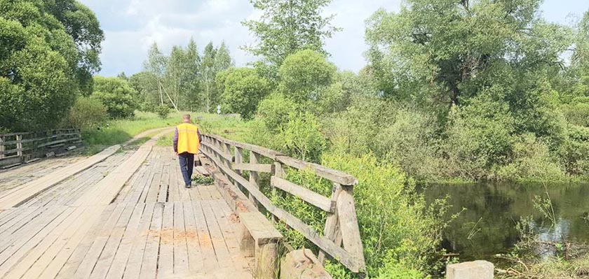 «Зараз ідзе падсыпка пад’язных шляхоў. Працуюць бульдозер, самазвал, каткі, – расказаў галоўны інжынер ДРБУ-204 Аляксандр Фурсін. – Побач са старым драўляным мостам будзе зроблены новы жалезабетонны, надзейны і даўгавечны. Субпадрадчыкам выступіла будаўніча-мантажнае ўпраўленне № 5 г. Віцебска, работнікі якога маюць спецыяльную тэхніку, каб устанавіць жалезабетонныя пралёты. На рэканструкцыю моста з абласнога бюджэту выдзелена 936 тысяч рублёў».