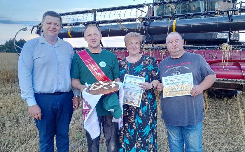 Павіншаваць лідара жніва прыехалі кіраўнік раёна Сяргей Галынчык, старшыня райкама прафсаюза работнікаў АПК Вольга Пусянкова, дырэктар ААТ «АграБаравінка» Яўген Мурашка.