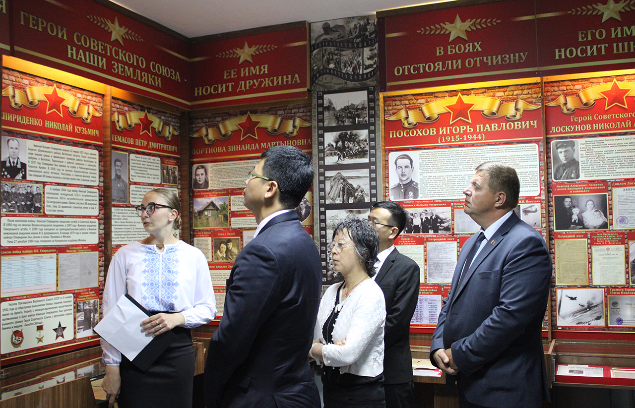 Председатель райисполкома Сергей Галынчик познакомил гостей с Шумилинским районом, рассказал о производственном и экспортном потенциале района. Глава района подчеркнул, что белорусский и китайский народы связывают общие страницы истории, совместной борьбы с фашизмом, ярким примером которой служит подвиг нашего земляка Николая Лоскунова.