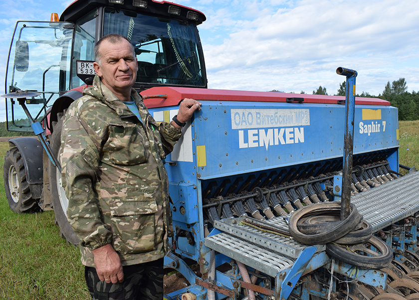 Аднымі з першых пачалі сеяць азімы рапс у ААТ «Ляжні». Работы ідуць на палетках за вёскай Забор’е, дзе на МТЗ з сеялкай працуе мясцовы механізатар Юрый Аўчыннікаў. Для яго гэта работа прывычная, бо рупіцца ў сельскай гаспадарцы больш за трыццаць гадоў. «На сяўбе рапсу працую гадоў дваццаць, – расказаў Юрый. – Сеялку ўстанавіў на мікрасяўбу – зерне ж дробненькае. Затое і расход невялікі – каля 6 кілаграмаў на гектар трэба».