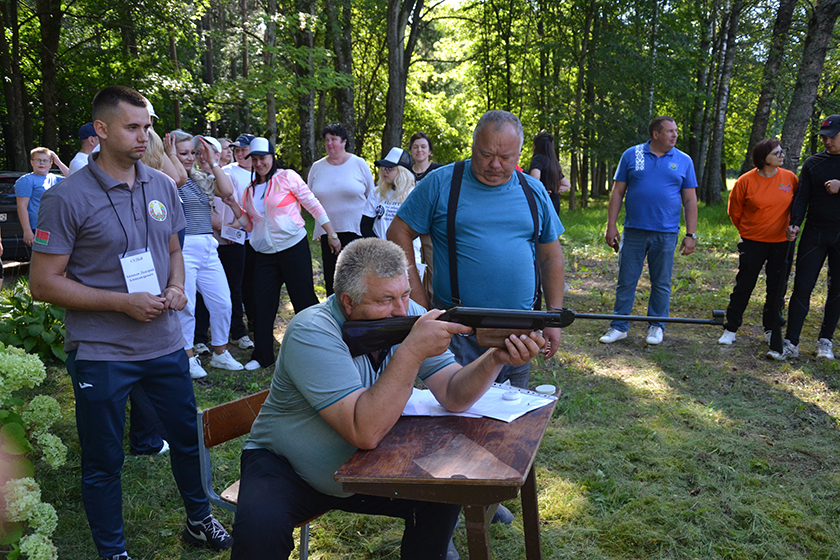 Конкурсную праграму адкрывала стральба з пнеўматычнай зброі, у якой па ўмовах удзельнічалі кіраўнікі арганізацый ці іх намеснікі. Лепш за ўсіх адстраляўся дырэктар Обальскай СШ Аляксандр Сачыўка, які крыху апярэдзіў Вольгу Далецкую з СШ № 1 і Ігара Гудкова з ЦРБ.
