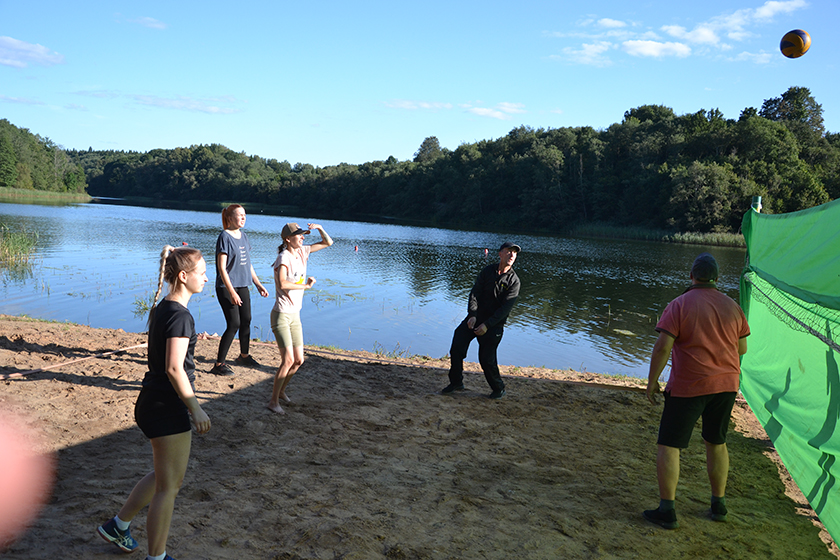 Мала хто ведае, што такое кернтбол. А вось турысты, якія пастаянна ўдзельнічаюць у турзлецё, цу доўна ведаюць, што гэта валейбол з закрытай сеткай і гуляць у яго весела і задорна. Лагічна, што ў фінале сышліся каманды райвыканкама і СШ № 1 – яны добра ведаюць нюансы гэтага вясёлага віду спорту. Удача была на баку педагогаў. А тым часам у лагерах рыхтаваліся да самага смачнага конкурсу – кулінарнага. Толькі вось арганізатары зрабілі ўдзельнікам сюрпрыз: камандам трэба было прэзентаваць паходную страву «Каша з сякеры». І турысты крэатыўна справіліся. Асабліва хочацца выдзеліць каманду райвыканкама, якая прэзентавала сваю кашу на беларускай мове.
