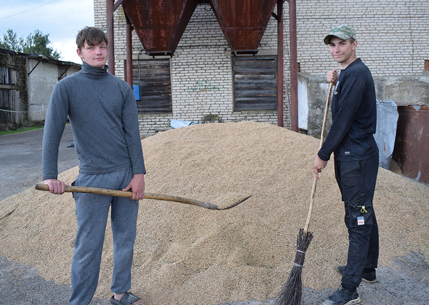 У пачатку жніўня на зернесушыльны комплекс уладкаваліся Ягор Нікіфараў і Артур Пузікаў. На тэрыторыі зернесушыльнага комплексу заўсёды многа работы, у тым ліку і ручной. Трэба падкінуць зерне рыдлёўкай, падмесці тэрыторыю. Усім гэтым і займаюцца студэнты.
