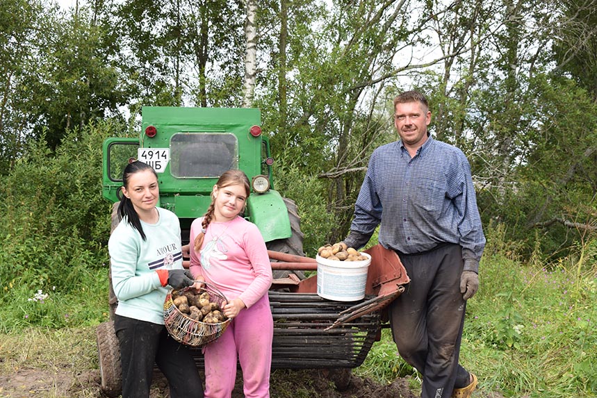 Вадзім Корсакаў, карані якога з суседняй вёскі Роўнае, купіў дом у Казьянах паўтара года таму. Крыху пазней – трактар Т-40 з касілкай, саджалкай, капалкай, культыватарам, акучнікам. Узяў зямлі 1,3 га і сёлета пасадзіў бульбу розных гатункаў. Капаць яе дапамагаюць жонка Крысціна і васьмігадовая дачка Мілана. Пачалі са “скарба”, на падыходзе – “вектар” і іншыя гатункі. Ураджай мяркуюць прадаць, гэтым самым грошай зарабіць.