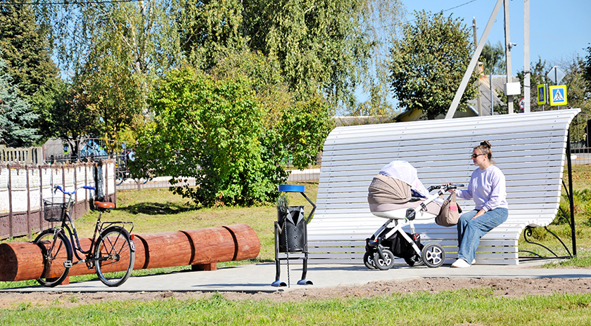 У Шуміліне, на Алеі герояў-летчыкаў, з’явілася яшчэ адно ўтульнае месца для адпачынку з арыгінальнай велапаркоўкай. Маладыя мамачкі ацанілі.