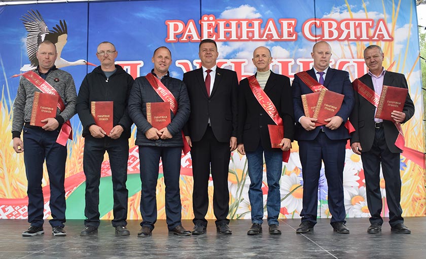 Кіраўнік раёна ўручыў Ганаровыя граматы райвыканкама КУСГП «Ульскі» (дырэктар Уладзімір Касцюкоў) за першыя месцы па вытворчасці зерневых і зернебабовых культур, СФГ «Раднік» (кіраўнік Юрый Сямёнаў) – лідару па намалоце зерня і масланасення рапсу, механізатарам Сяргею Гоманаву з ААТ «АграБаравінка», які заняў першае месца ў раёне на намалоце зерня і рапсу, Валерыю Шэдзько з СФГ «Раднік» – лідару раёна па ўборцы шматгадовых траў, Генадзю Кралько з КУСГП «Ульскі» і Аляксандру Антонаву з ААТ «АграБаравінка» – за першыя месцы па перавозцы збожжа, Леаніду Голубеву з ААТ «Прыазёрны мір» – пераможцы на сушцы зерневых, зернебабовых і крыжакветных культур.