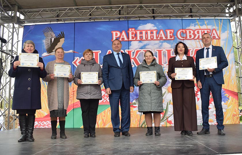 За другія і трэція месцы калектывы сельгаспрадпрыемстваў і асабіста механізатараў павіншаваў начальнік райсельгасхарчу Уладзімір Пушноў. Лепшыя працаўнікі вёскі атрымалі таксама граматы раённай арганізацыі Беларускага прафсаюза работнікаў АПК. Цёплымі словамі і падарункамі ўшанавалі ветэранаў працы.