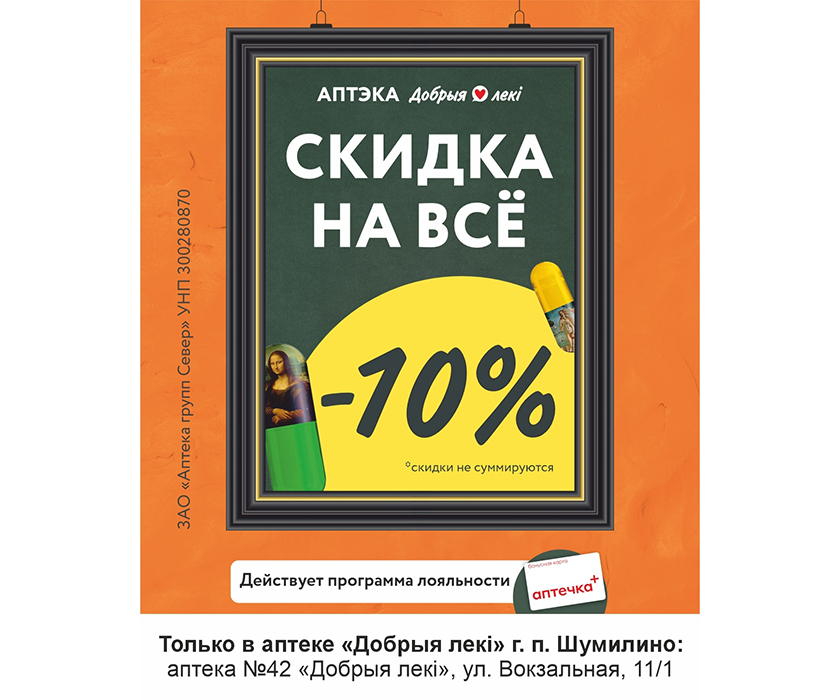 Адрес аптеки «Добрыя лекi» в Шумилино: ул. Вокзальная, 11/1