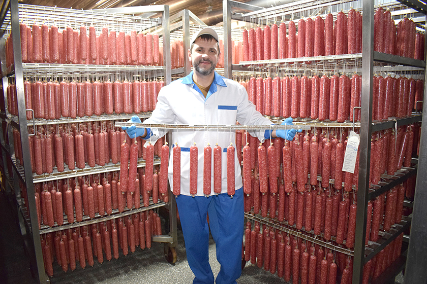 Работнікі ўчастка сыравэнджанай прадукцыі ТАА «Вітконпрадукт», які пачаў працаваць у 2021 годзе, рэгулярна радуюць пакупнікоў новымі відамі прадукцыі. Каўбас зараз тут вырабляюць каля дваццаці гатункаў.