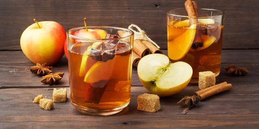Пряный яблочный напиток, приготовленный на основе натурального сока, ещё один символ осени. Для него подойдут яблочный сок, корица, мускатный орех и немного гвоздики. Напиток нужно слегка подогреть, и тогда кухня наполнится ароматом сада. Такой напиток отлично подходит для семейных вечеров.