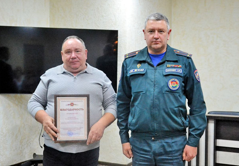 Начальнік Шумілінскага РАНС Андрэй Сасновіч перадаў шчырыя словы падзякі ад імя начальніка Віцебскага абласнога ўпраўлення МНС Сяргея Мялешкіна і ўручыў Падзякі сталяру Аляксею Васілеўскаму і вадзіцелю аўтамабіля Івану Лапавухаву.