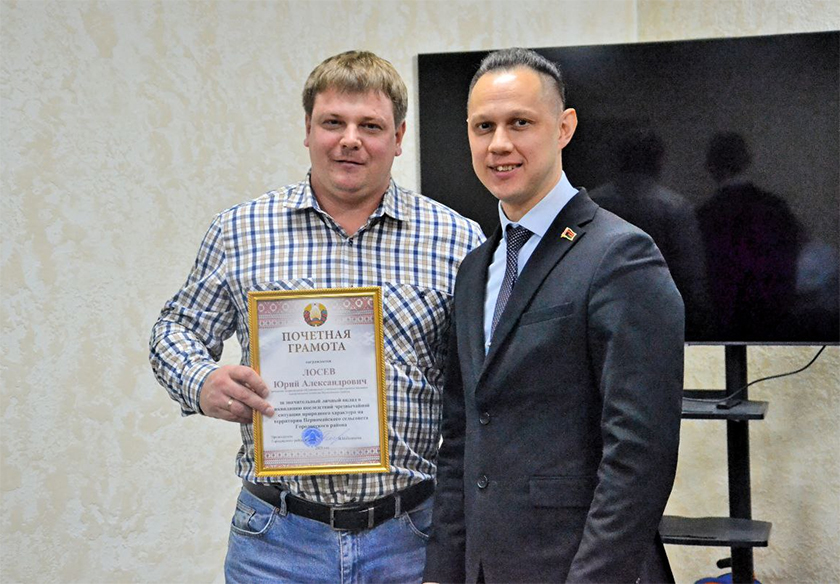 Ад імя кіраўніцтва Гарадоцкага раёна Валерый Ждан уручыў Ганаровыя граматы Гарадоцкага райвыканкама муляру Дзмітрыю Калеснікаву і начальніку падраздзялення «Шумілінскае» Юрыю Лосеву і выказаў шчырыя словы ўдзячнасці памочнікам.