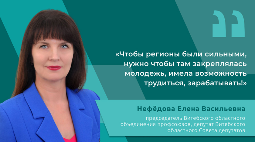 В завершение она добавила, что нужно следовать стратегии, обозначенной главой государства: сильные регионы — сильная страна. «Чтобы они были сильными, нужно чтобы там закреплялась молодежь, имела возможность трудиться, зарабатывать, было доступным арендное жилье. И об этом сказано в проекте программы социально-экономического развития Беларуси на будущую пятилетку. Это социальная и экономическая защита наших людей», — сказала Елена Нефедова.