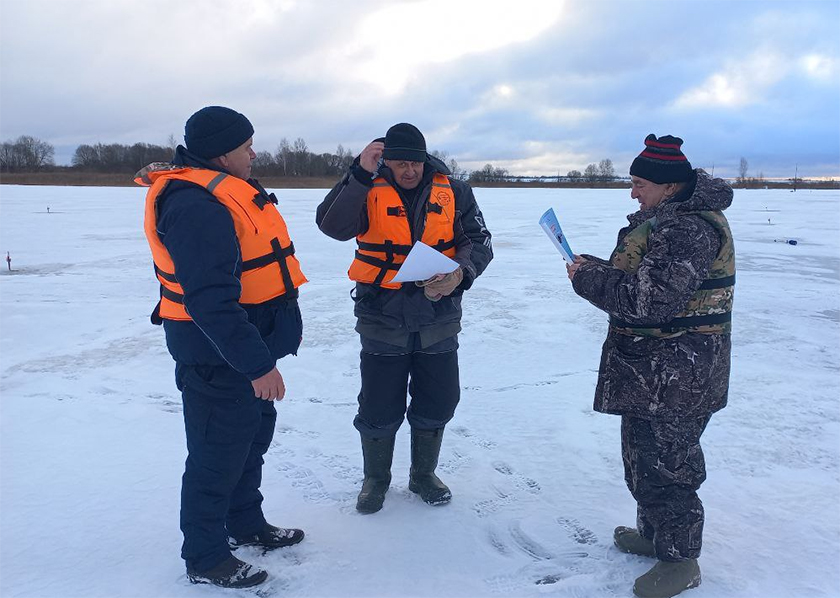Спасатели Шумилинской районной организации ОСВОД раздают рыбакам листовки по безопасному поведению на льду, профилактике несчастных случаев и способам спасения при попадании в воду.