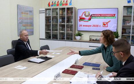 Продолжить чтениеВ ЦИК представлены документы о регистрации инициативной группы граждан по сбору подписей избирателей в поддержку выдвижения кандидатом в Президенты Беларуси Сергея Сыранкова, передает корреспондент БЕЛТА. Документы в ЦИК Сергеем Сыранковым — первым секретарем ЦК Коммунистической партии Беларуси были поданы лично. Выборы Президента Беларуси назначены на 26 января 2025 года.