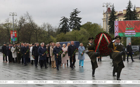 ФОТОФАКТ: Участники VII ВНС возложили венки и цветы к монументу Победы в Минске