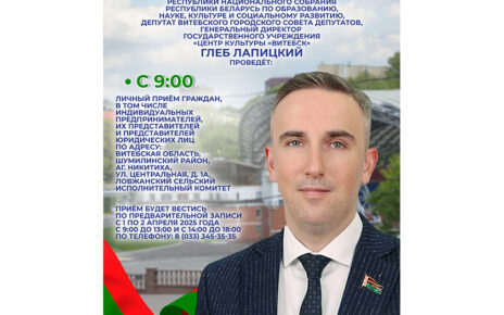 3 апреля член Совета Республики Глеб Лапицкий проведёт личный приём граждан в Шумилинском районе